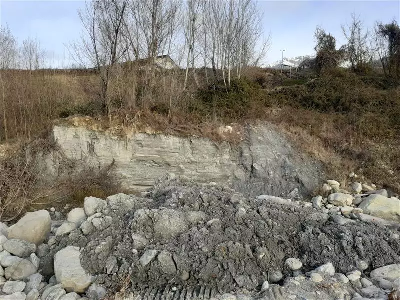 Nelle immagini la scogliera che la ditta Idrovie di Parma sta ultimando e il banco di argilla, presente e caratterizzante la zona, che risale alle ere geologiche.